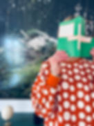 Kimono Kleid "DOTTI MEETS DISCO STRIPES" hellblau braun