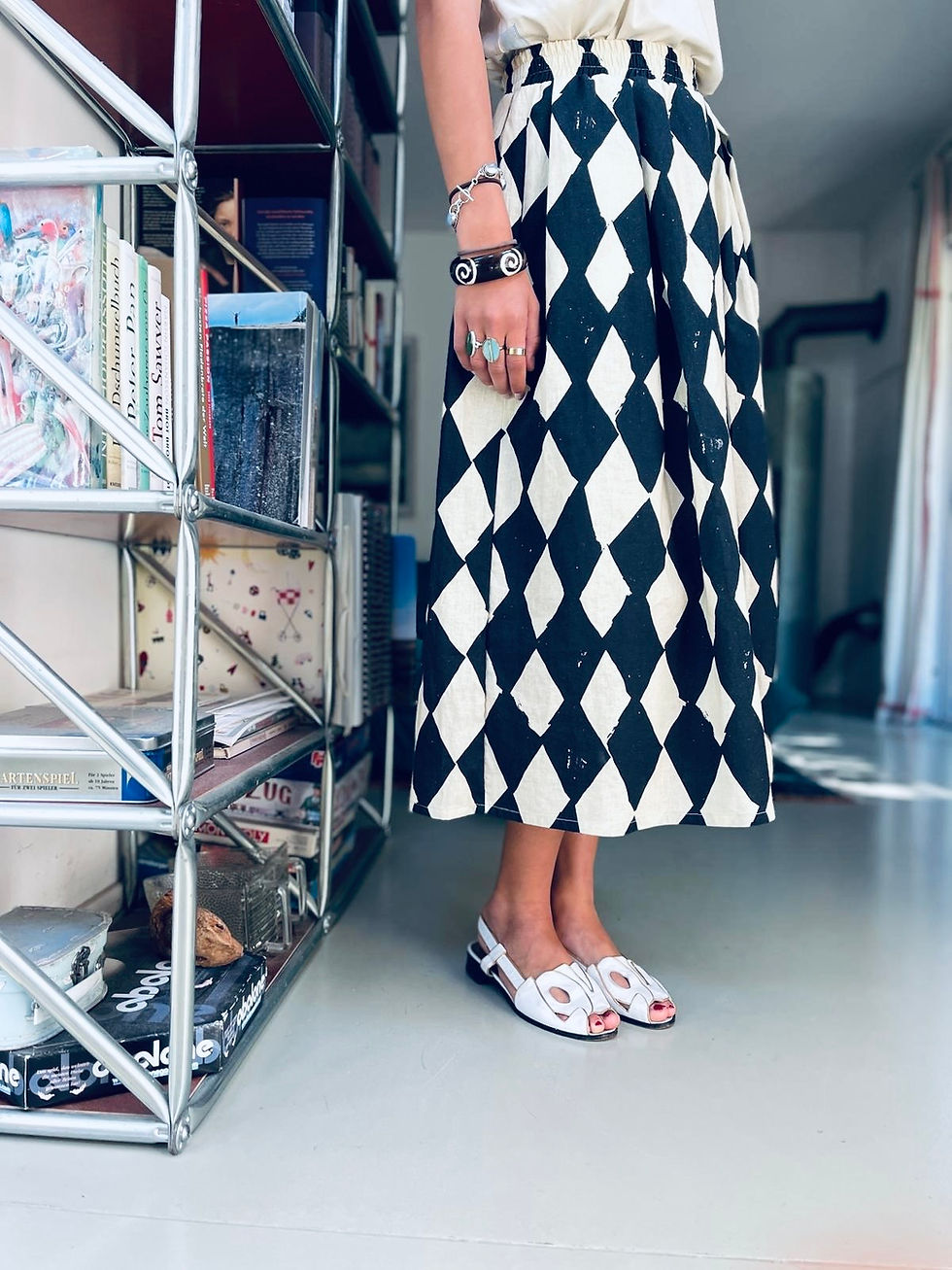 Rock Betty mit Knopfleiste "HARLEKIN" schwarz creme