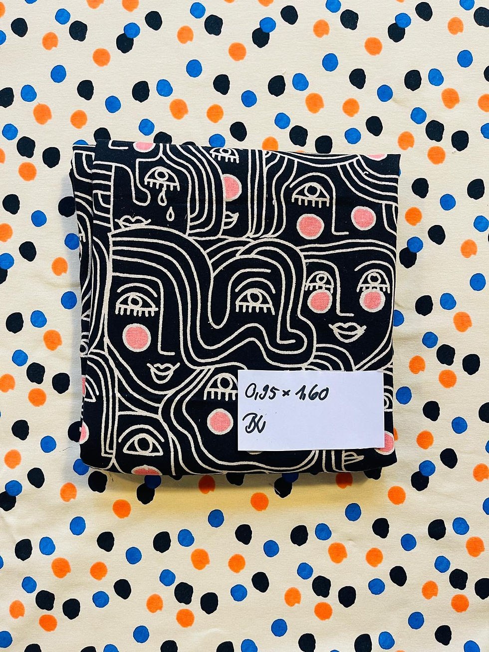 Stoffrest 0.95m x 1.60m Leinen feste Baumwolle SHE SHE SHE schwarz creme